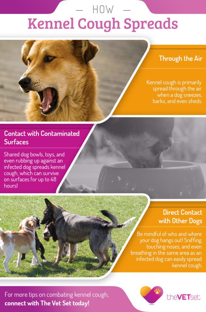 Kennel cough can spread through direct dog-to-dog contact (touching noses), through the air, and contaminated areas such as water and food bowls and even sharing toys. While it is treatable, it can be an issue for puppies and older dogs, and those dogs with compromised immune systems.