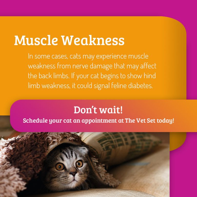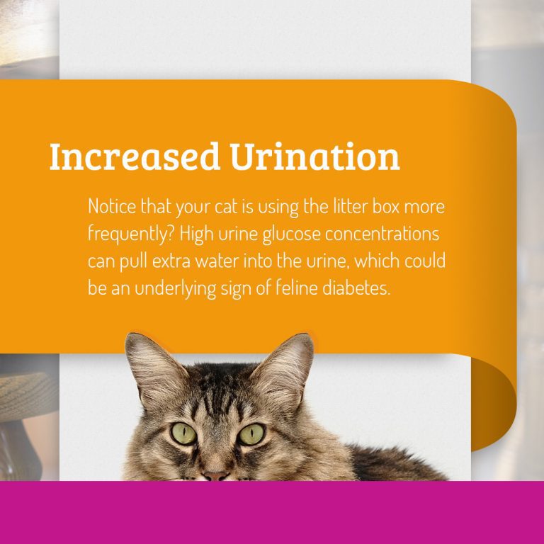 If you begin to notice changes in your cat, it’s always important to monitor them and contact your vet who can provide better assistance. Signs of feline diabetes include increased urination, increased thirst, increased hunger, weight loss, and muscle weakness.