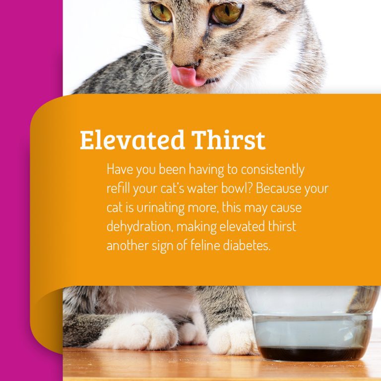 If you begin to notice changes in your cat, it’s always important to monitor them and contact your vet who can provide better assistance. Signs of feline diabetes include increased urination, increased thirst, increased hunger, weight loss, and muscle weakness.