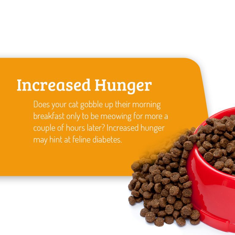 If your cat is overweight, it’s important to help your cat tackle weight loss that can result from the disease. If your cat is underweight, you can help them achieve a healthy weight with small feedings multiple times a day, or allowing them around the clock food access.